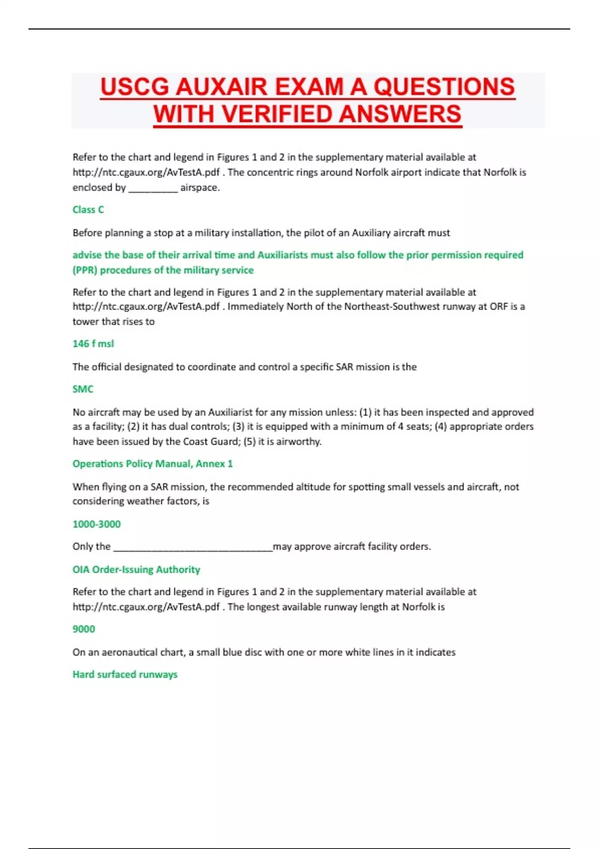 USCG AUXAIR EXAM A QUESTIONS WITH VERIFIED ANSWERS