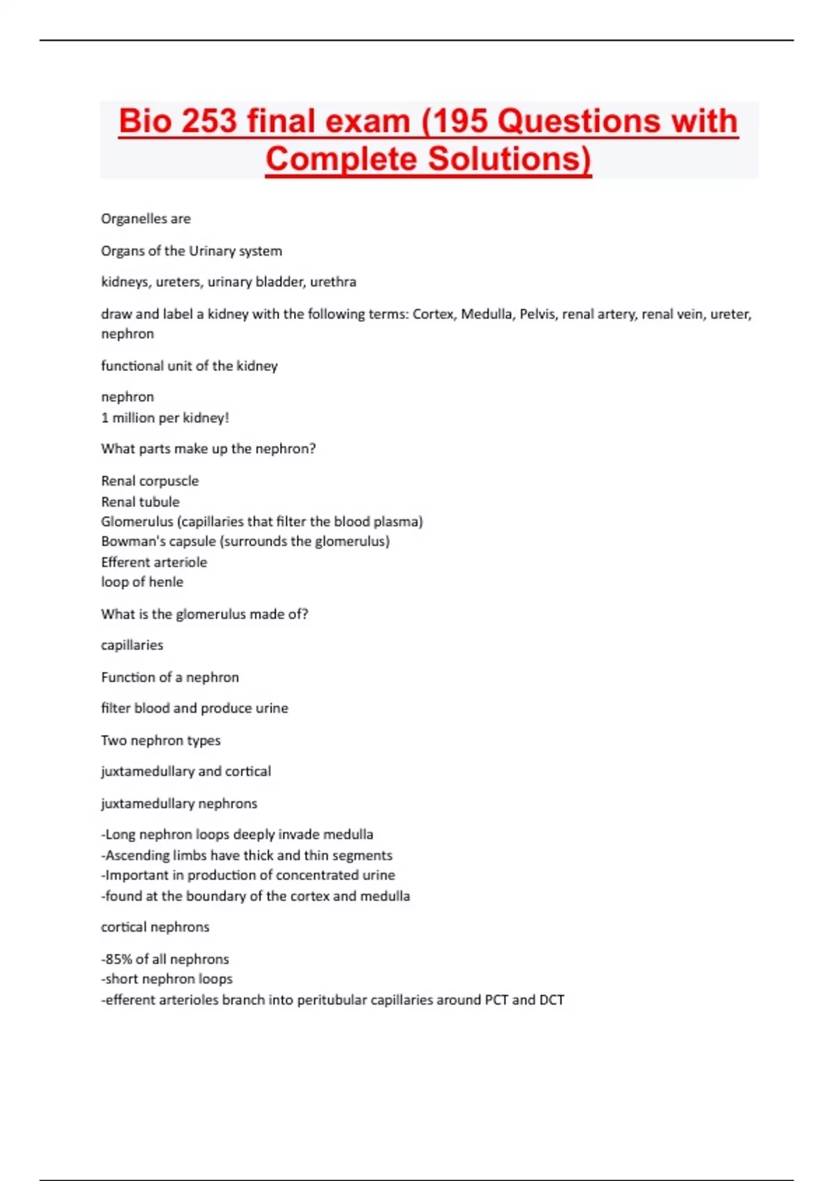 bio 253 final exam 195 questions with complete