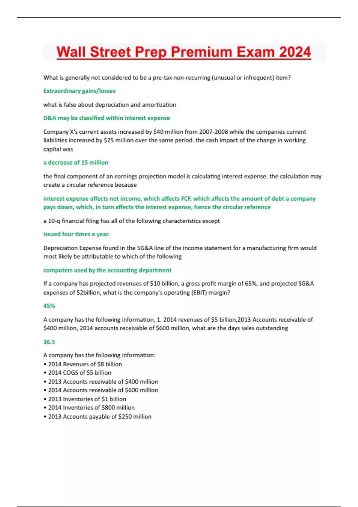 Wall Street Prep Premium Exam 2024