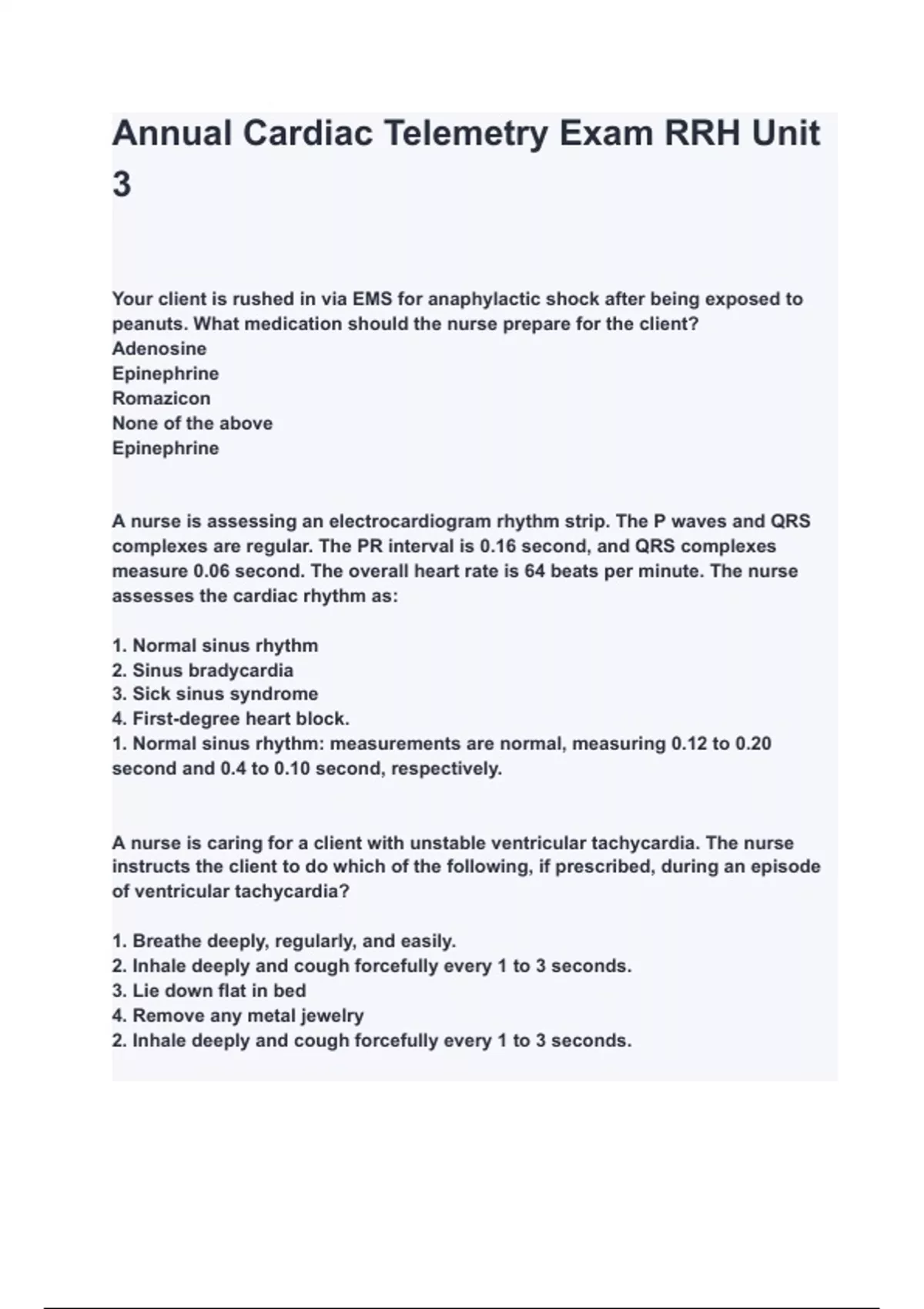 Annual Cardiac Telemetry Exam RRH Unit 3