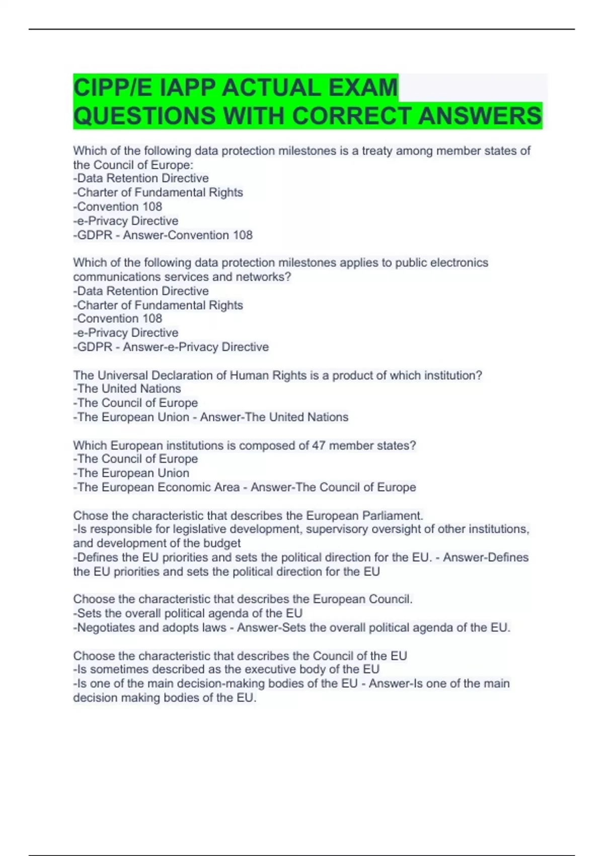 CIPP/E IAPP ACTUAL EXAM QUESTIONS WITH CORRECT ANSWERS