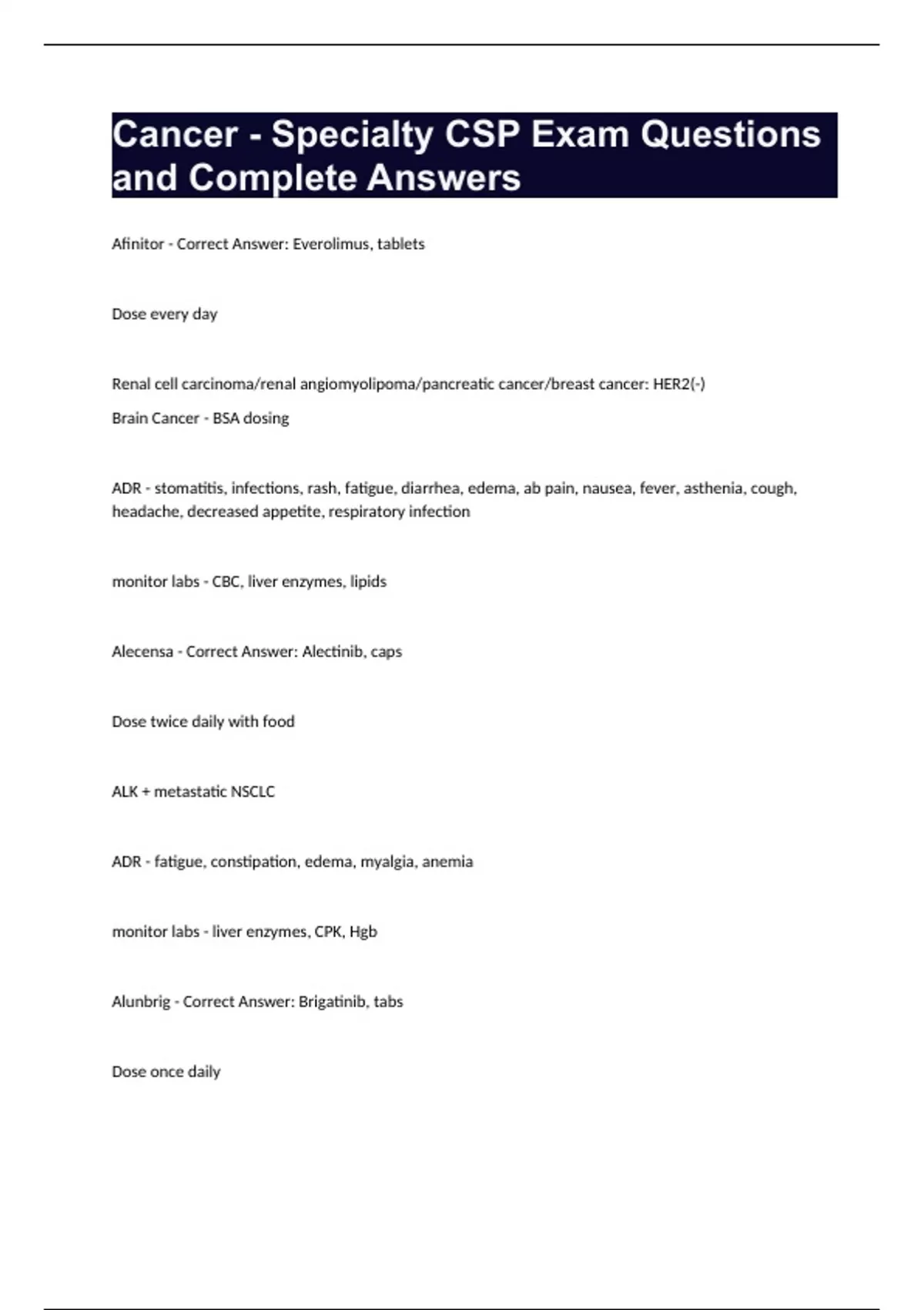 Cancer - Specialty CSP Exam Questions and Complete Answers