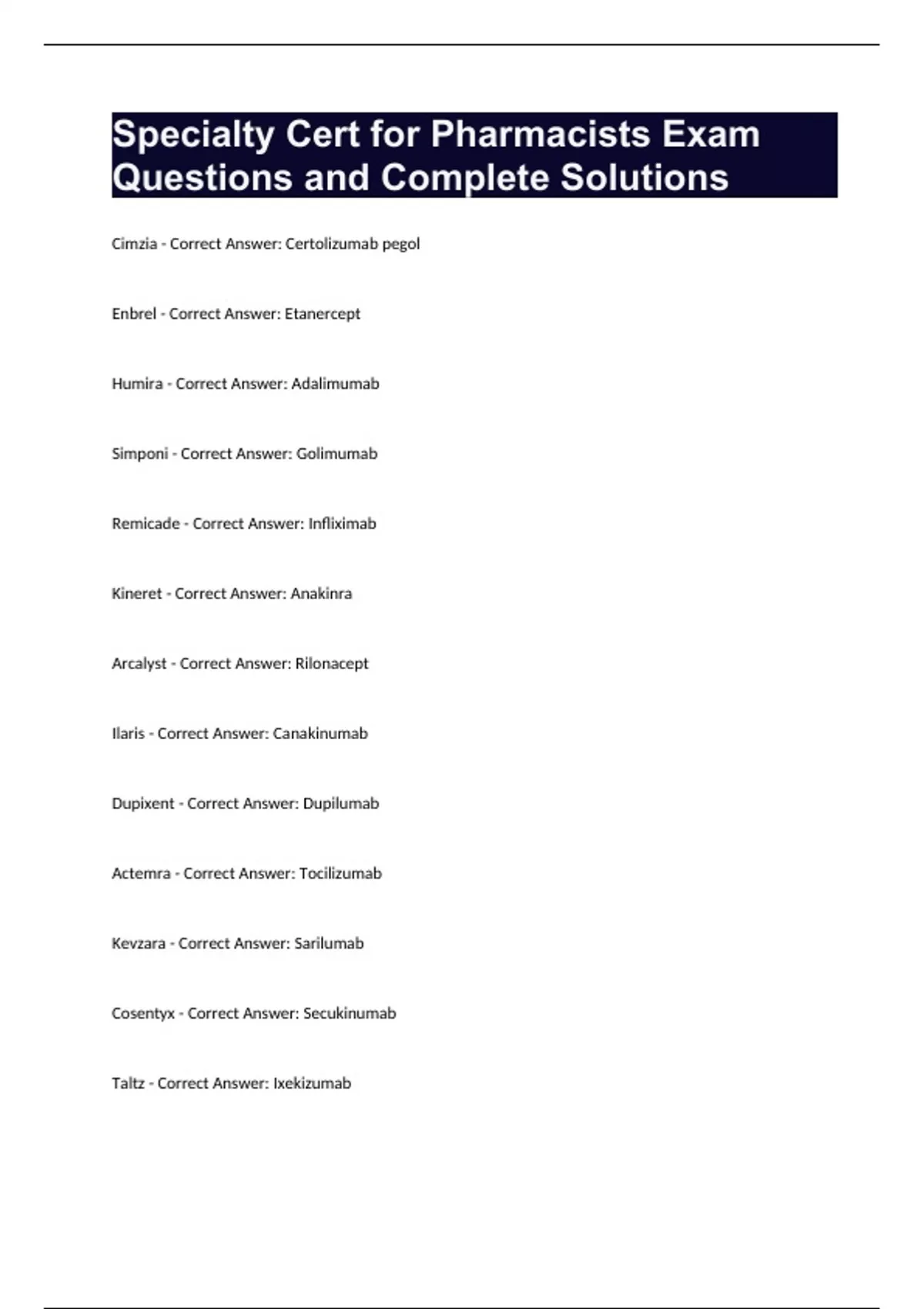 Specialty Cert for Pharmacists Exam Questions and Complete Solutions
