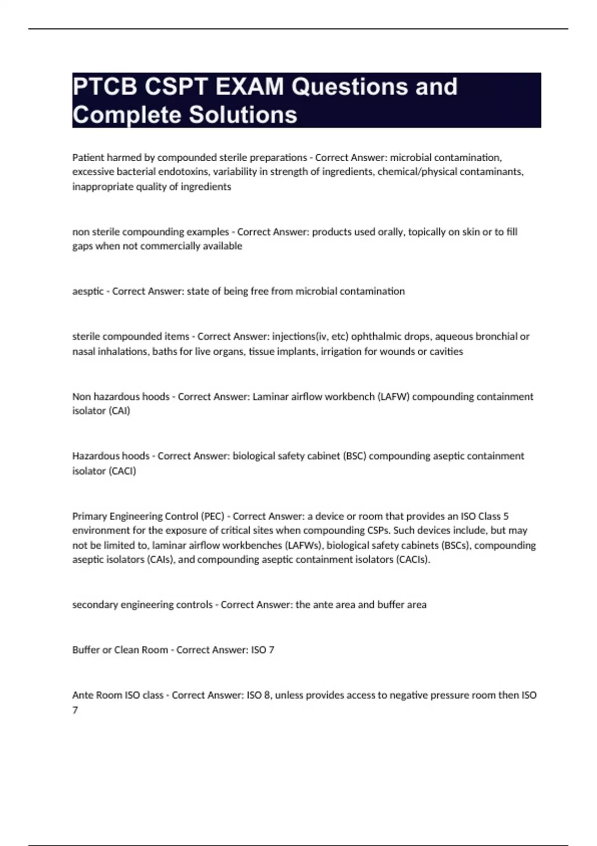 PTCB CSPT EXAM Questions and Complete Solutions.