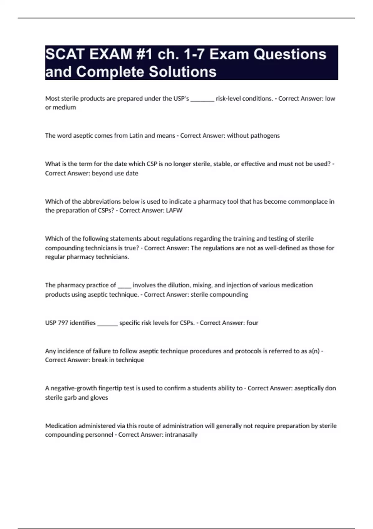 SCAT EXAM #1 ch. 1-7 Exam Questions and Complete Solutions