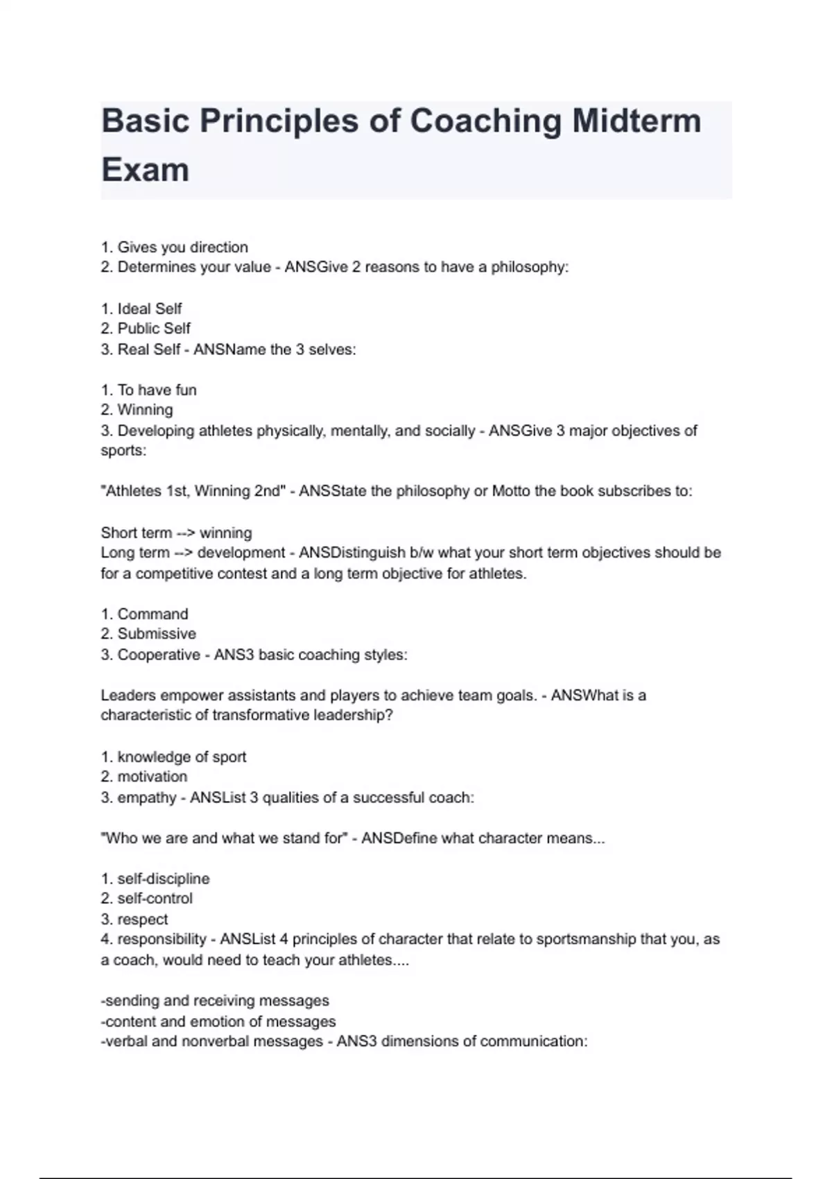 Basic Principles of Coaching Midterm Exam 2024/2025 A+ score assured