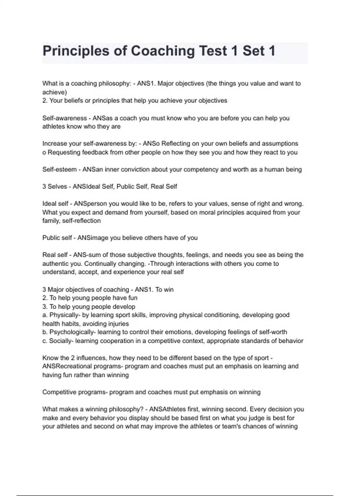 Principles of Coaching Test 1 Set 1 2024/2025 A+ score assured