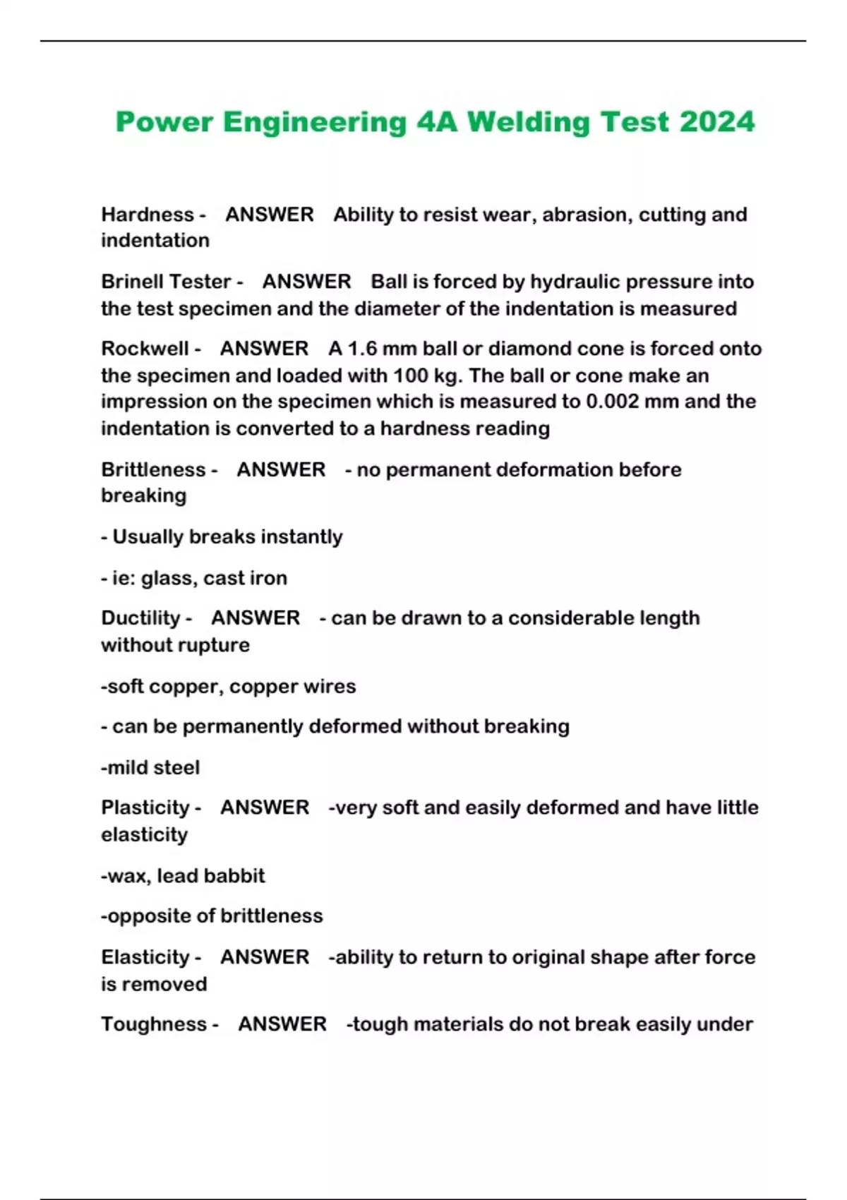 Power Engineering 4A Welding Test 2024...