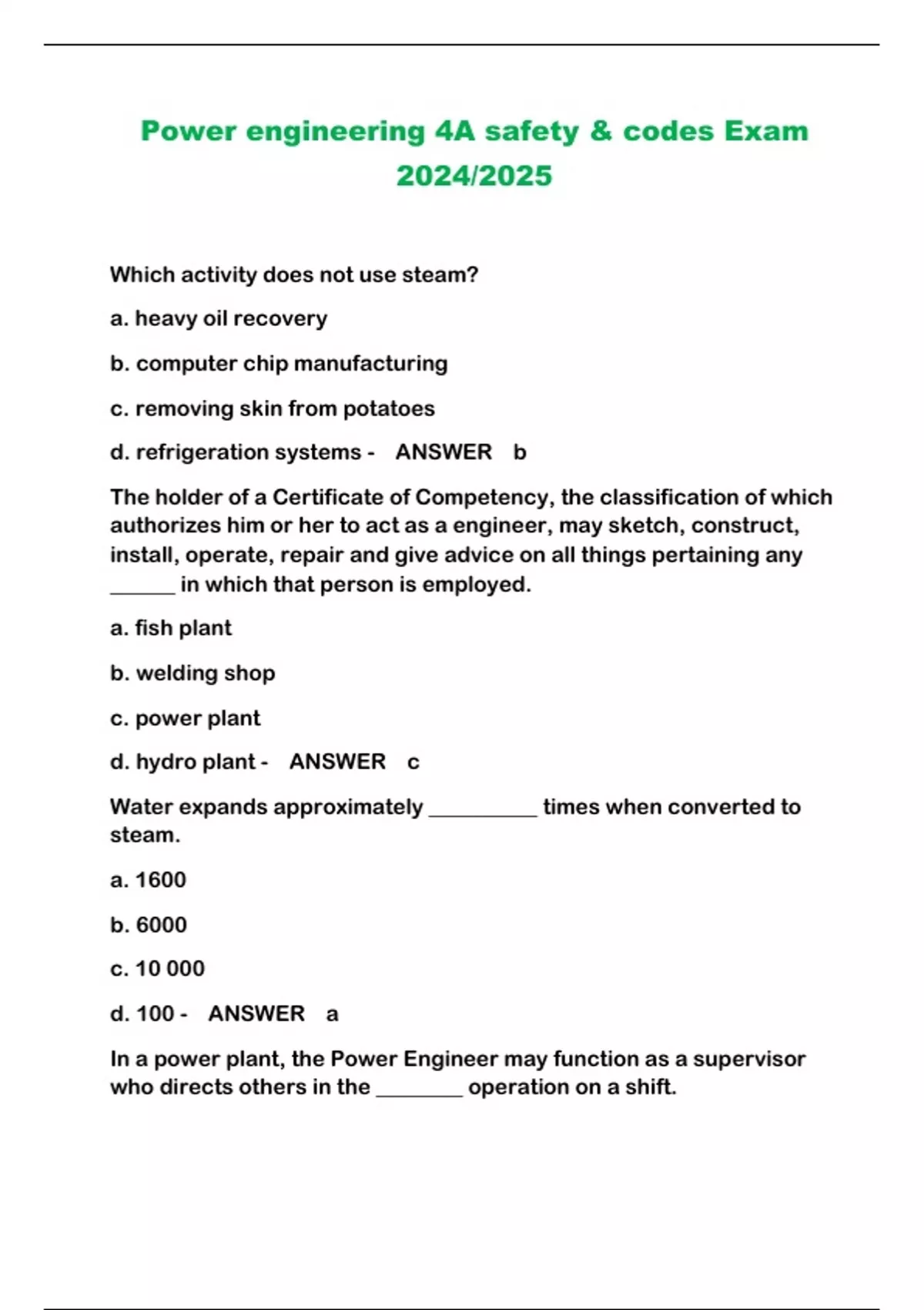 Power engineering 4A safety & codes Exam 2024/2025