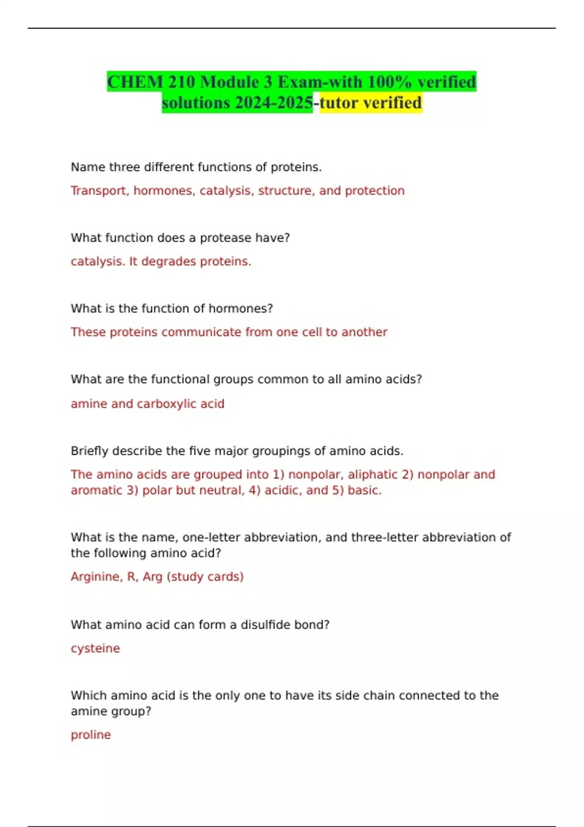 CHEM 210 Module 3 Exam-with 100% verified solutions -tutor verified