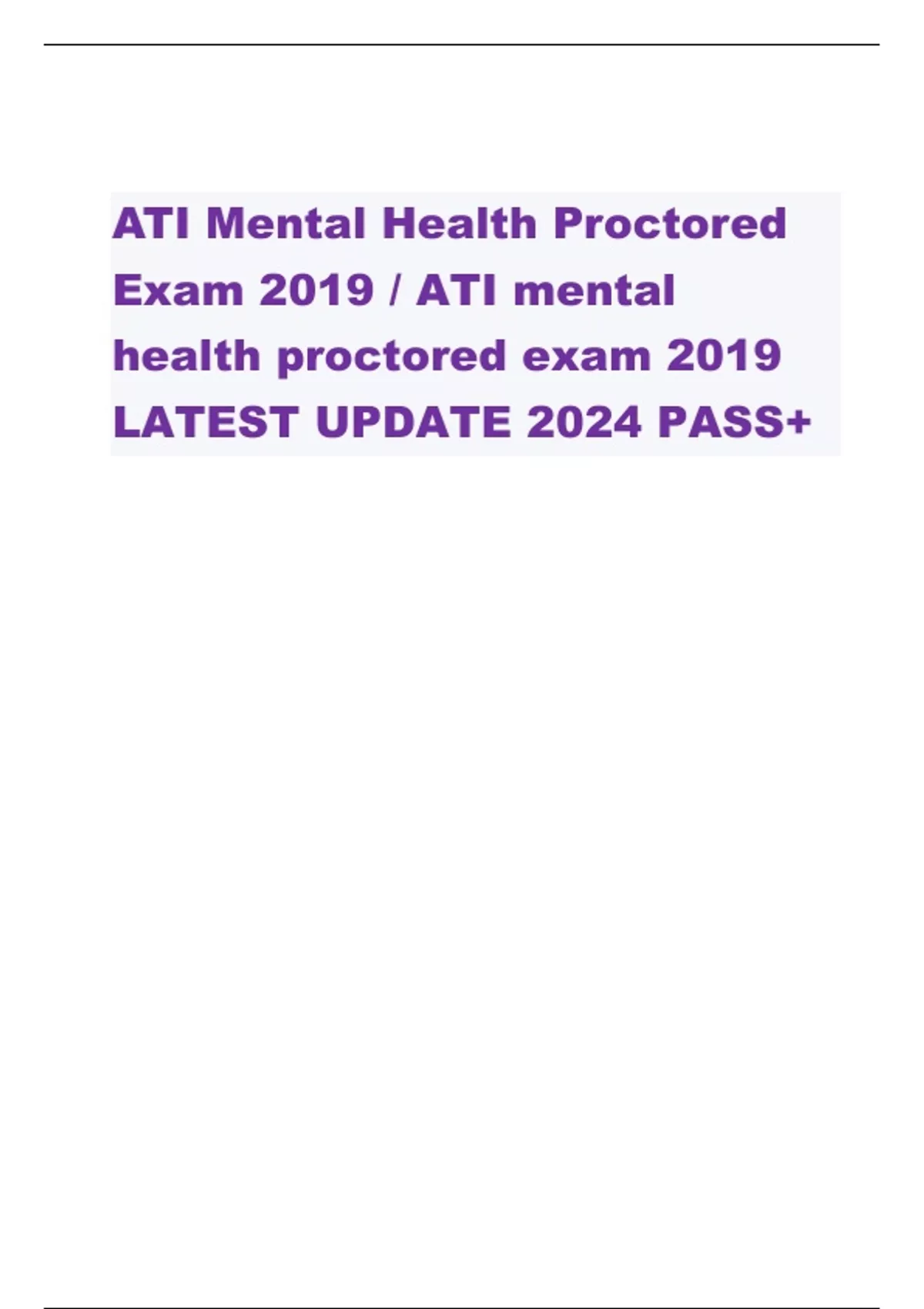 ATI Mental Health Proctored Exam 2019 / ATI mental health proctored exam 2019 LATEST UPDATE 2024 PASS+ A client is fearful of driving and enters a behavioral therapy program tohelp him overcome his anxiety. Using systematic desensitization, he is able