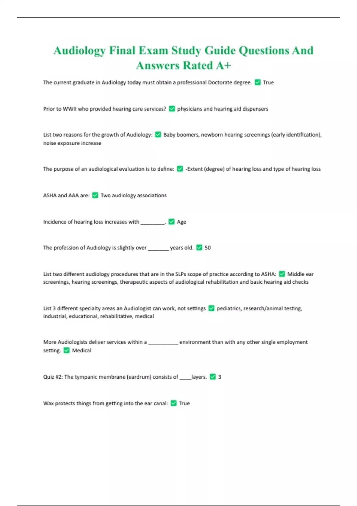 Audiology Final Exam Study Guide Questions And Answers Rated A+