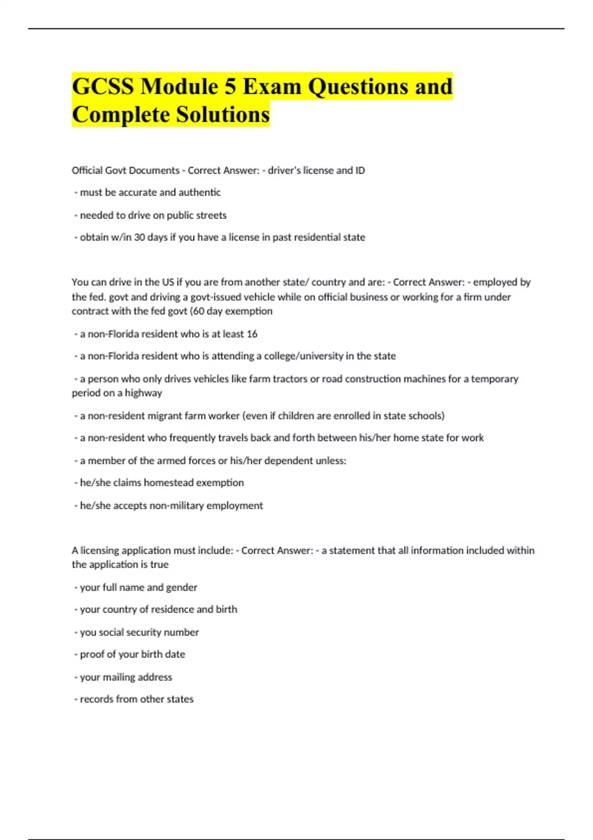 GCSS Module 5 Exam Questions and Complete Solutions.