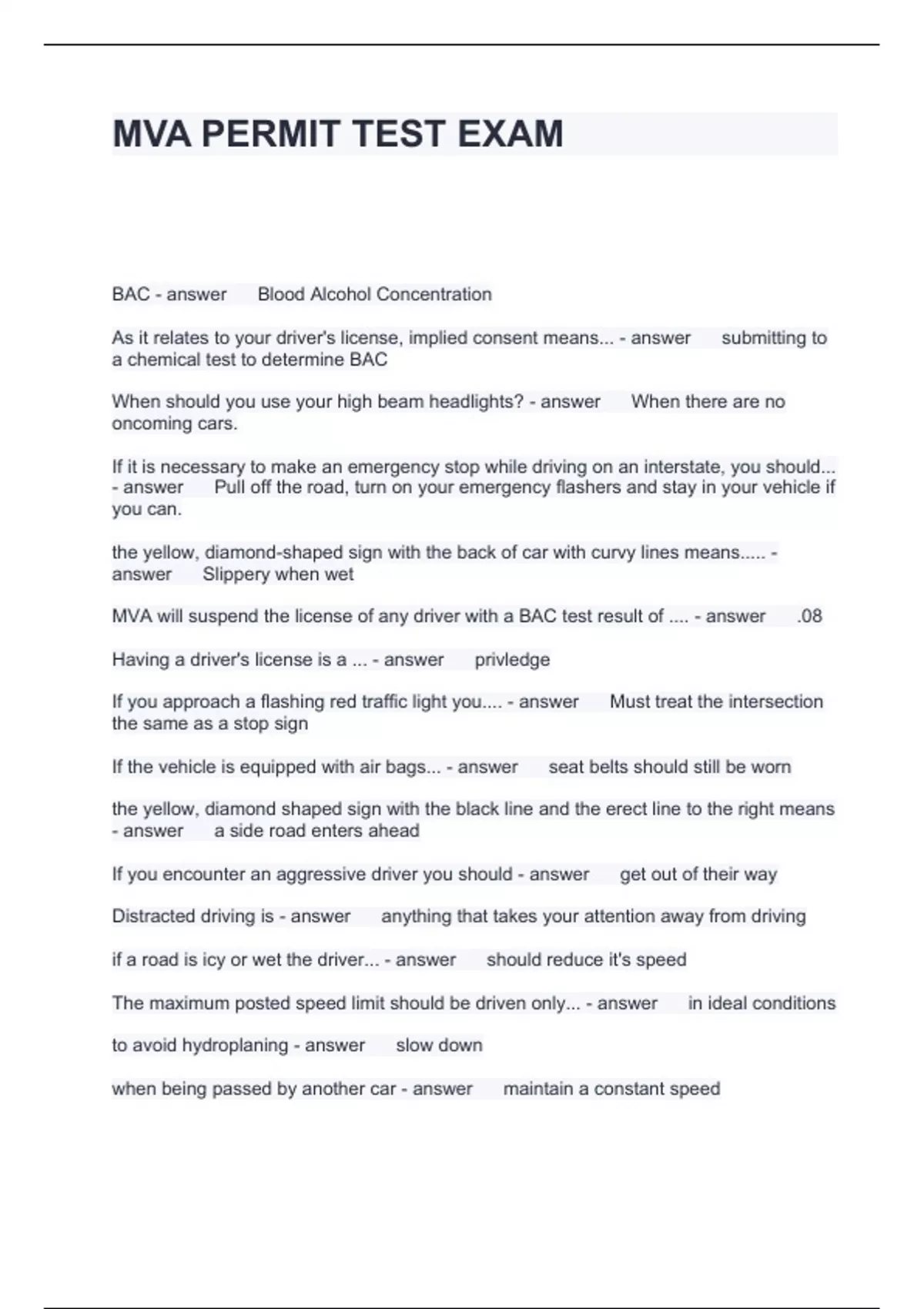 MVA PERMIT TEST EXAM