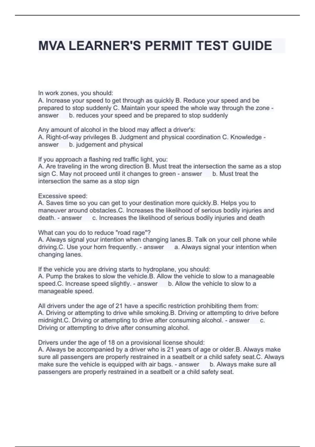 MVA LEARNER'S PERMIT TEST GUIDE QUESTIONS WITH CORRECT ANSWERS 2024