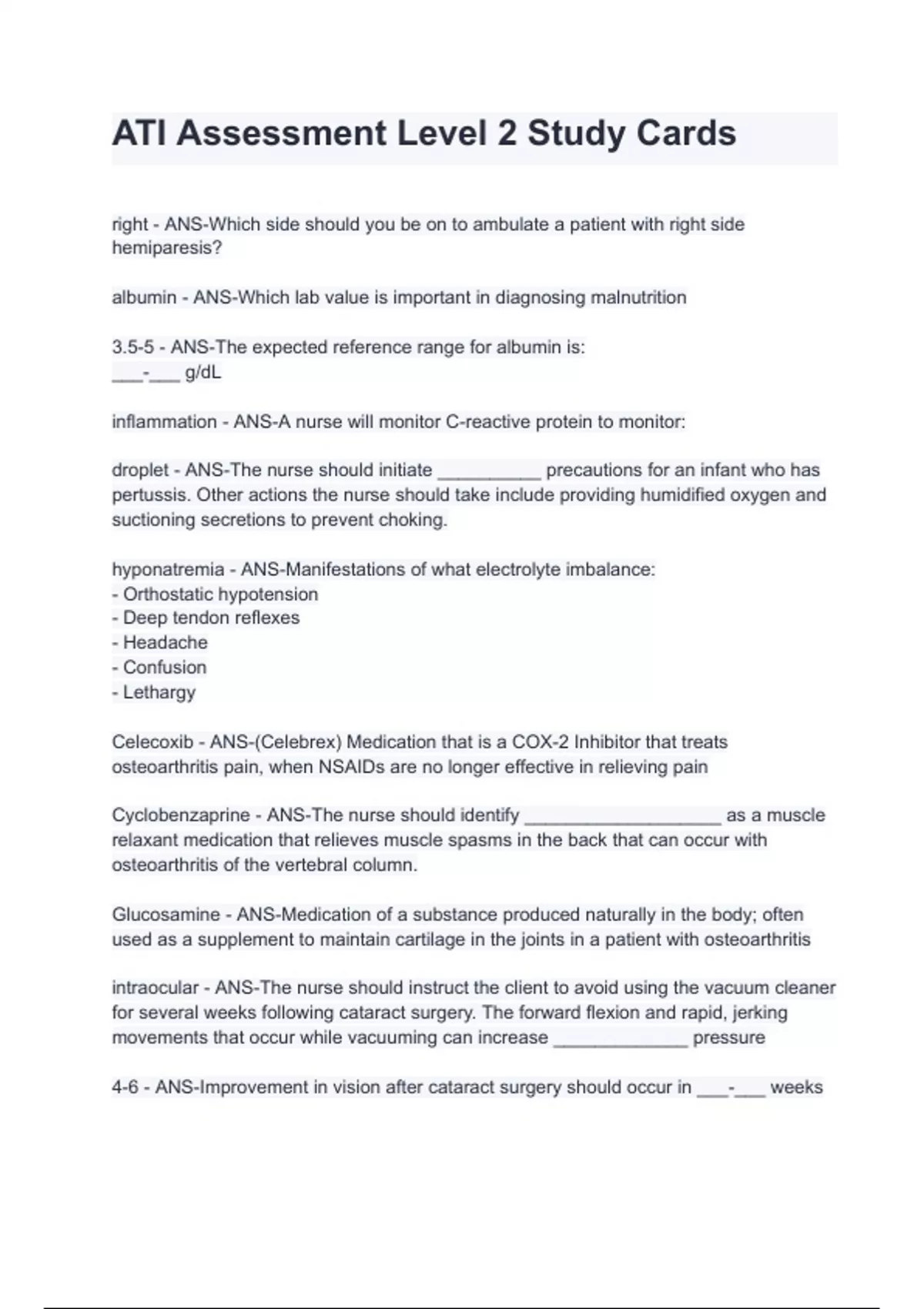 ATI Assessment Level 2 Study Cards with complete solution