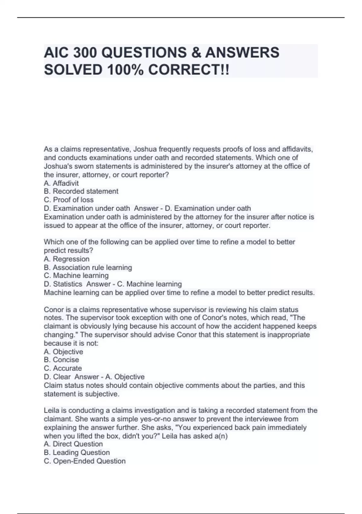 AIC 300 QUESTIONS & ANSWERS SOLVED 100% CORRECT!!