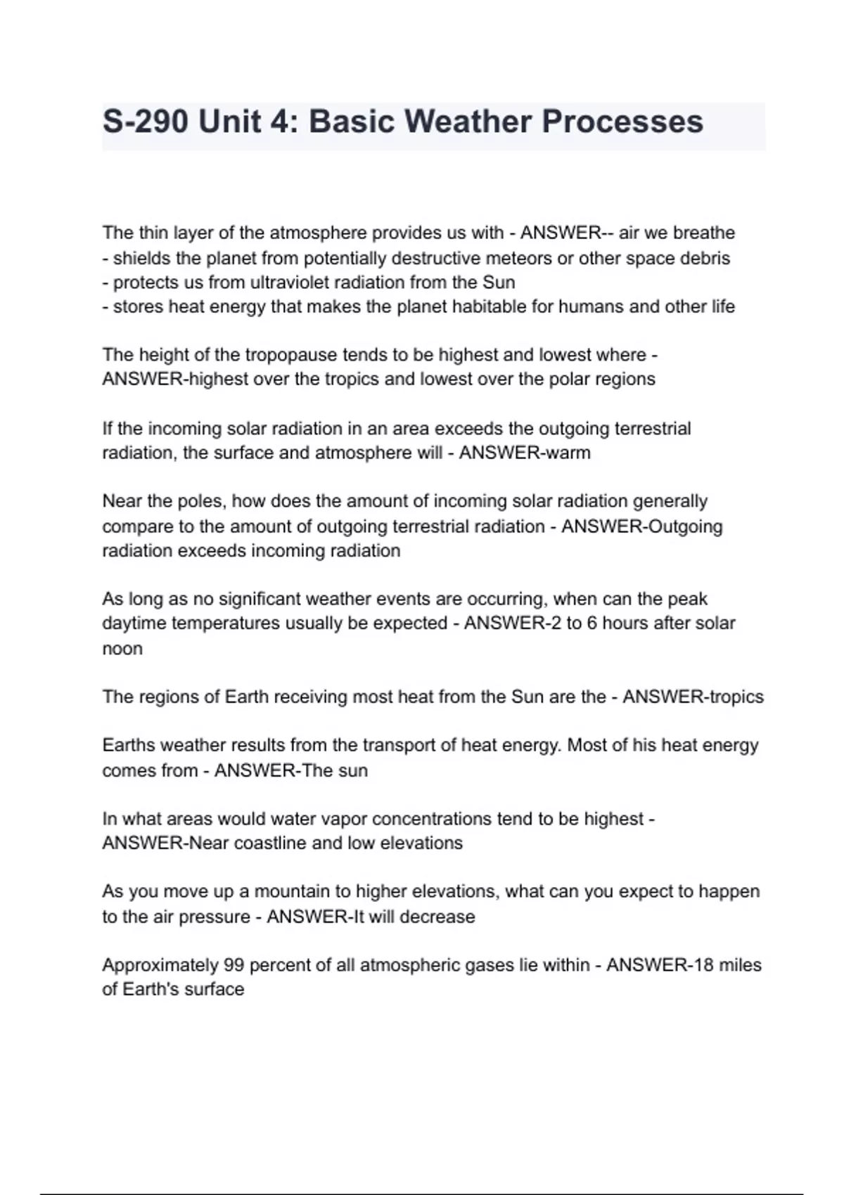 S-290 Unit 4_ Basic Weather Processes with complete solution