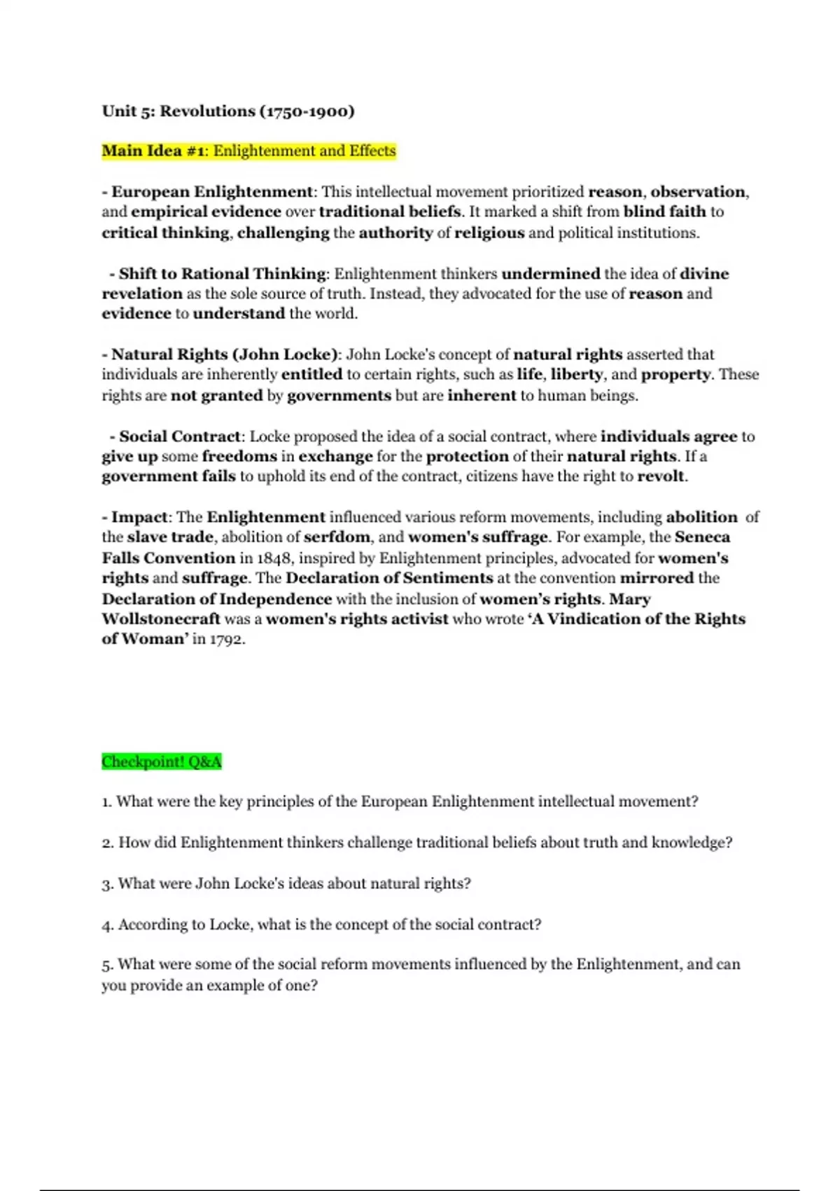 Complete AP World History Modern Unit 5 Review Study Guide with highlighted main points, need-to-know vocabulary, and questions for review. Study well!!!