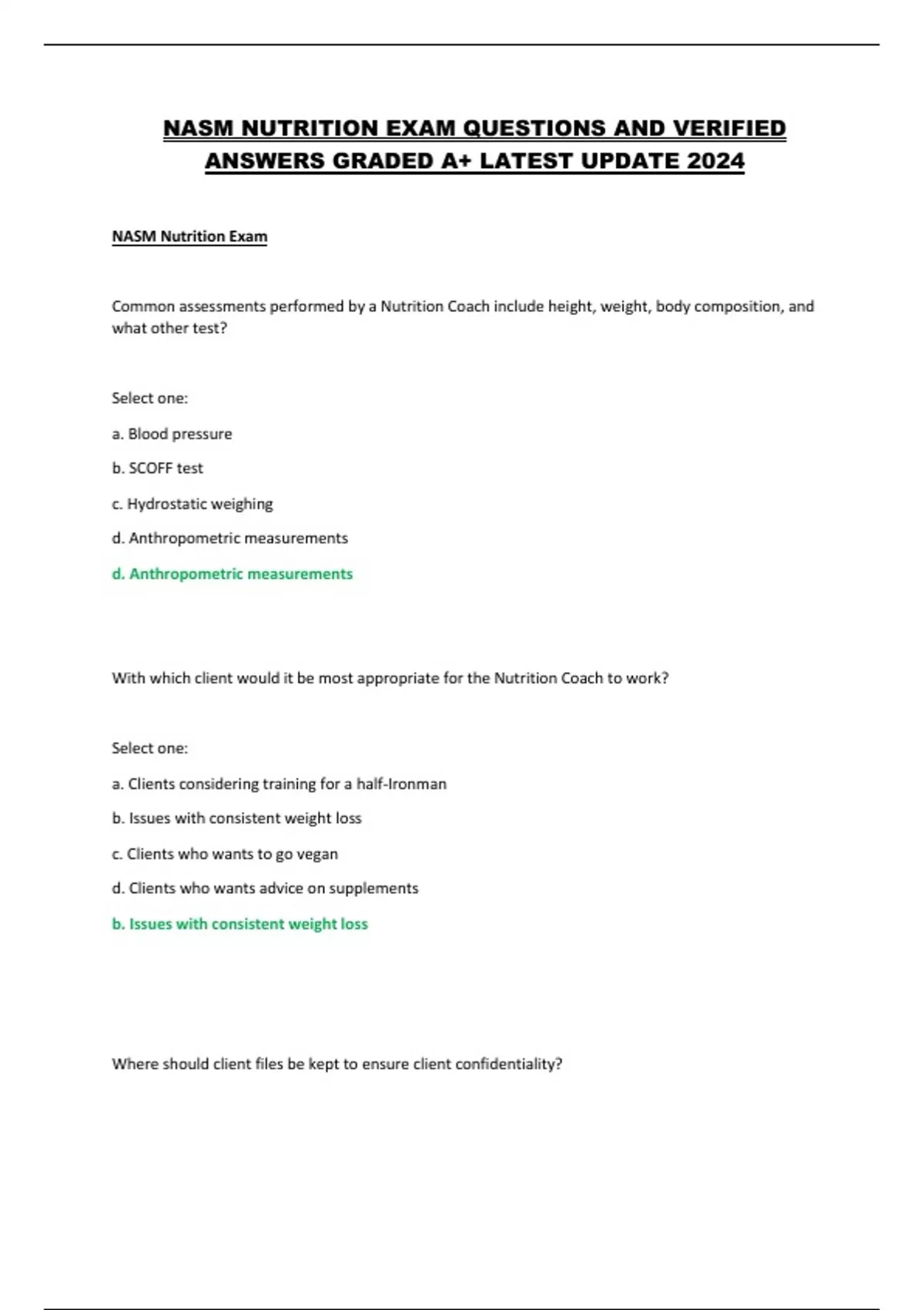 NASM NUTRITION EXAM QUESTIONS AND VERIFIED ANSWERS GRADED A+ LATEST UPDATE 2024