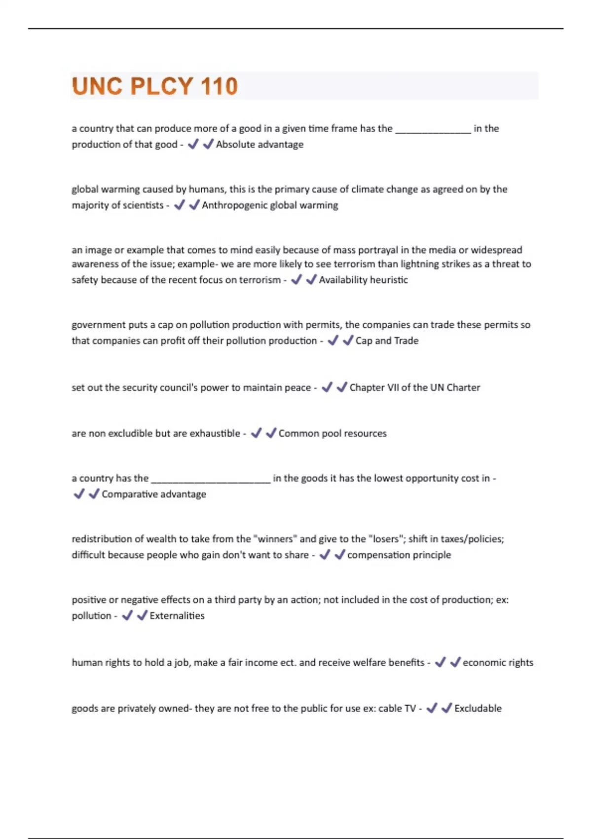 UNC PLCY 110 Questions and Answers(A+ Solution guide)