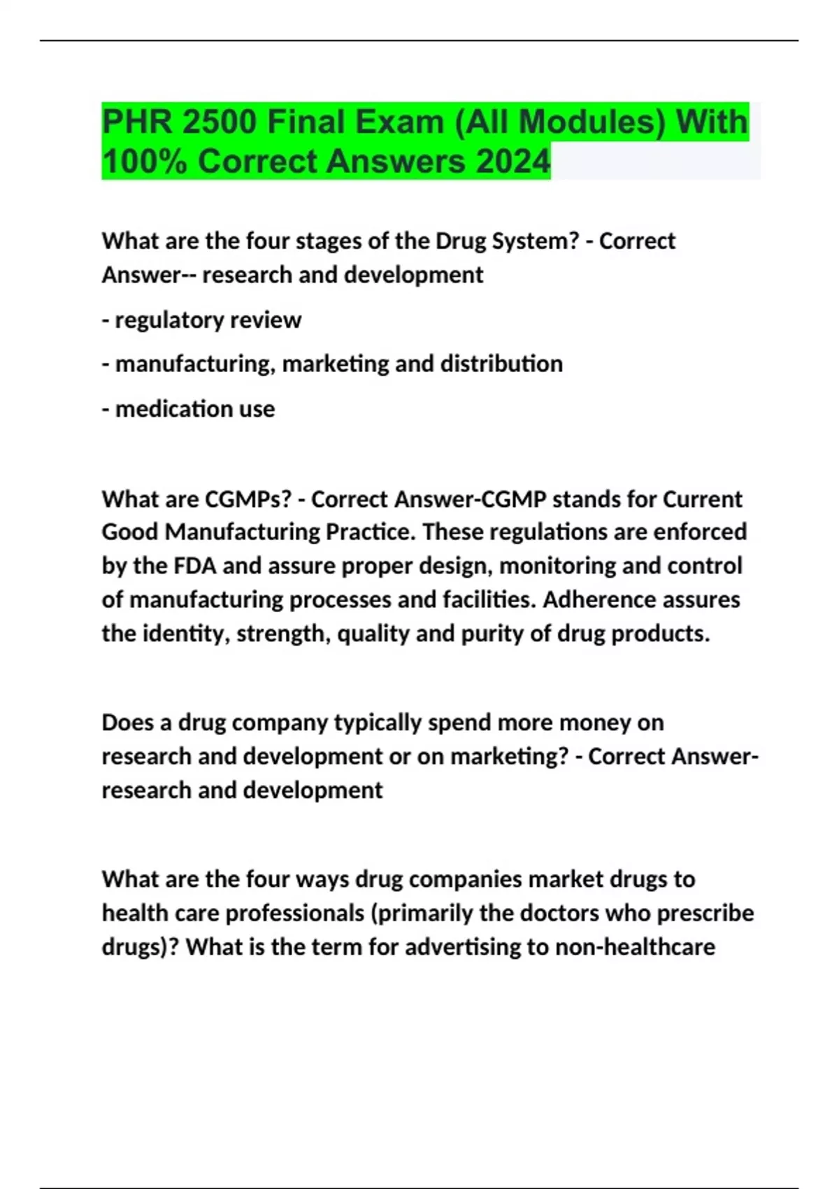 PHR 2500 Final Exam (All Modules) With 100% Correct Answers 2024