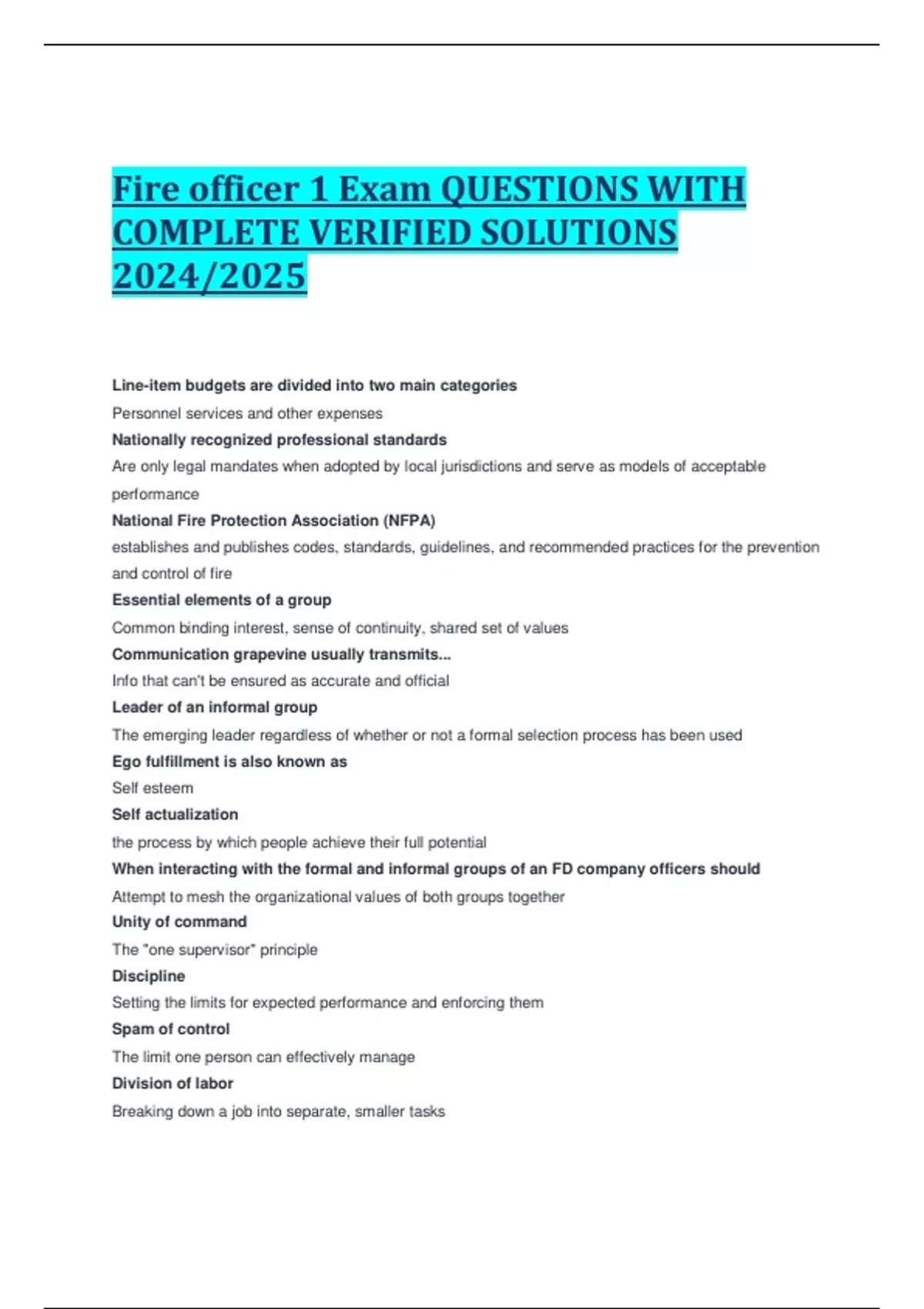 Fire officer 1 Exam QUESTIONS WITH COMPLETE VERIFIED SOLUTIONS 2024/2025