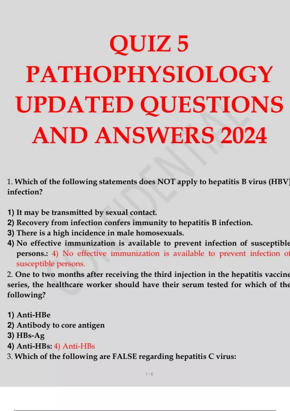 QUIZ 5 PATHOPHYSIOLOGY UPDATED QUESTIONS AND ANSWERS 2024
