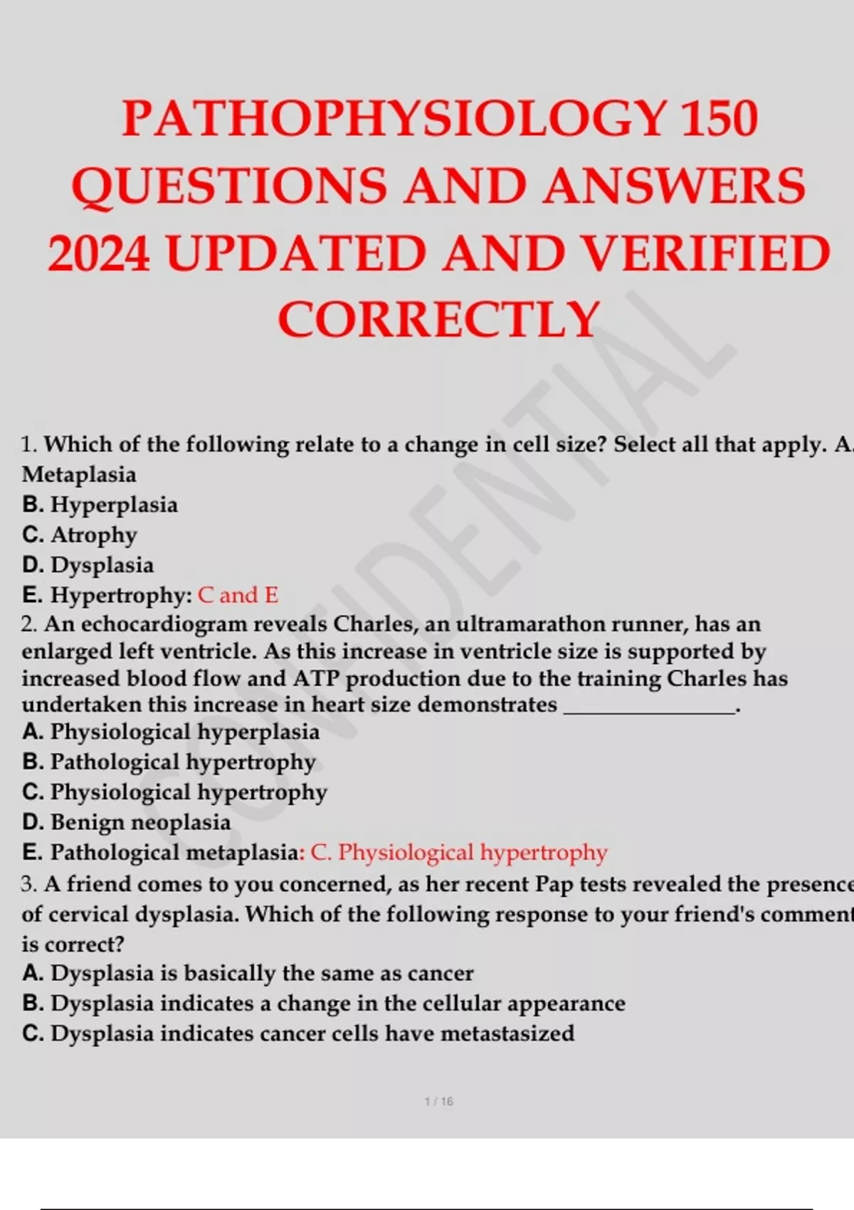 PATHOPHYSIOLOGY 150 QUESTIONS AND ANSWERS 2024 UPDATED AND VERIFIED CORRECTLY.