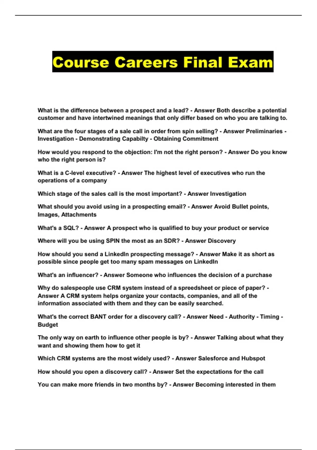 Course Careers Final Exam...