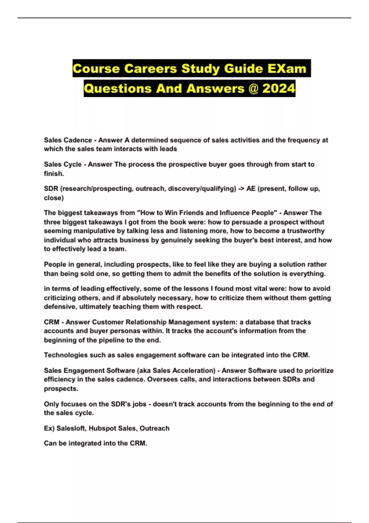 Course Careers Study Guide EXam Questions And Answers @ 2024...