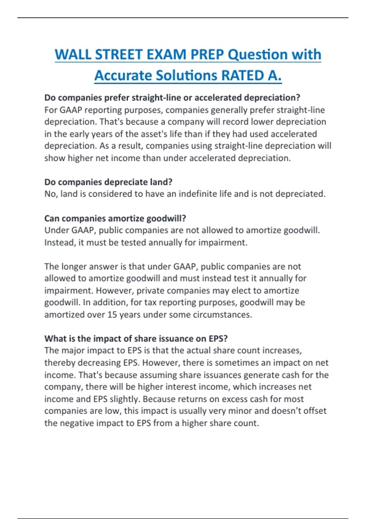 WALL STREET EXAM PREP Question with Accurate Solutions RATED A.