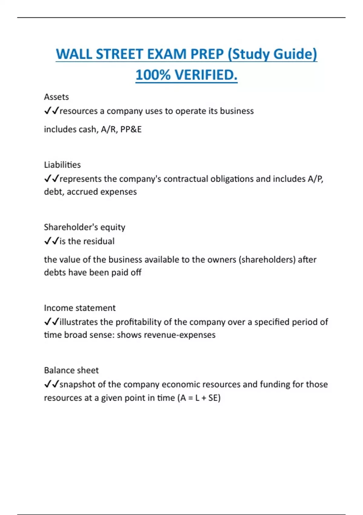 WALL STREET EXAM PREP (Study Guide) 100% VERIFIED.