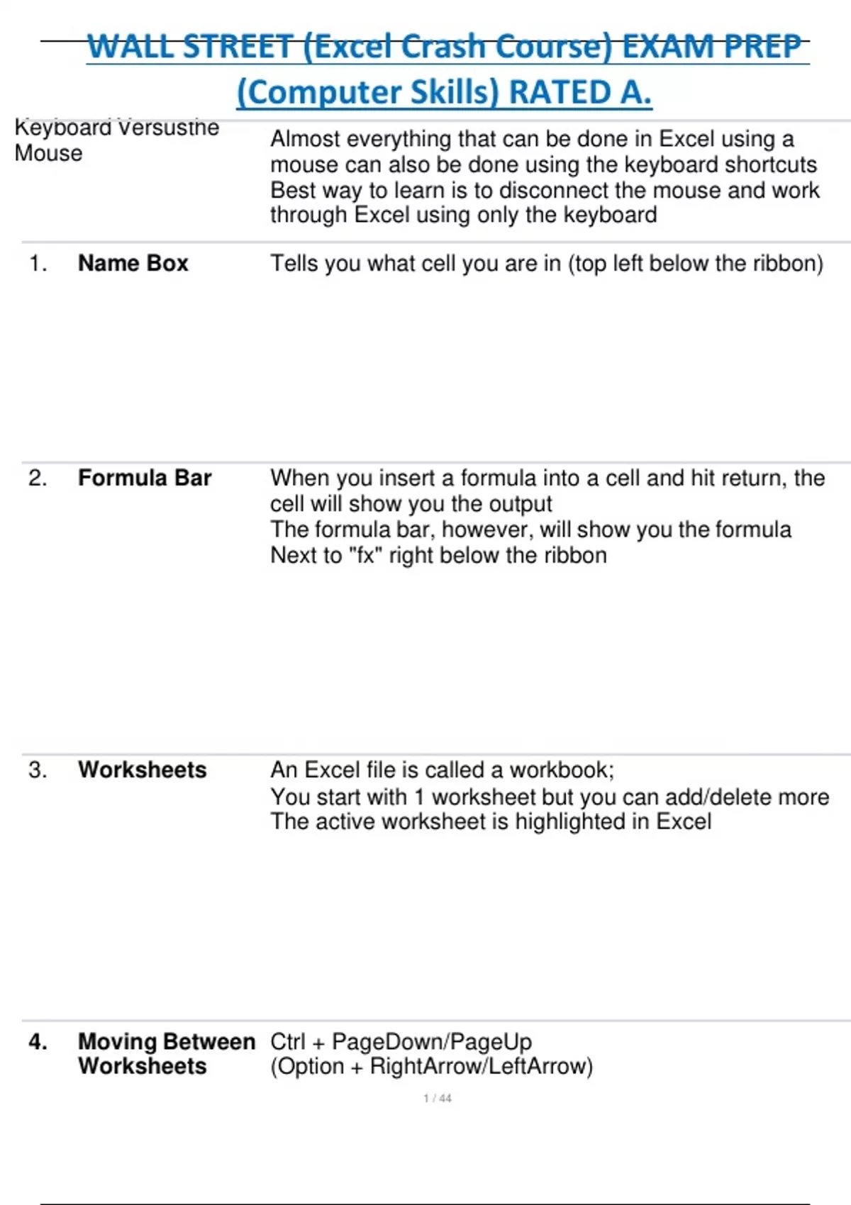 WALL STREET (Excel Crash Course) EXAM PREP (Computer Skills) RATED A.