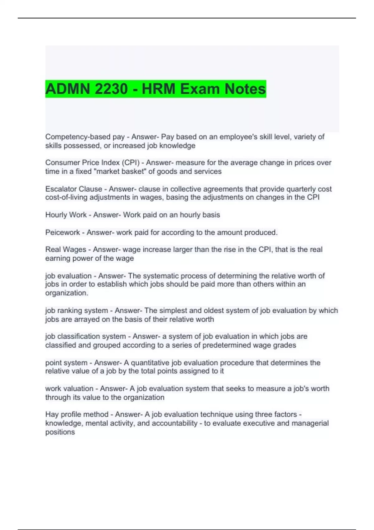 ADMN 2230 - HRM Exam Notes Questions and Answers