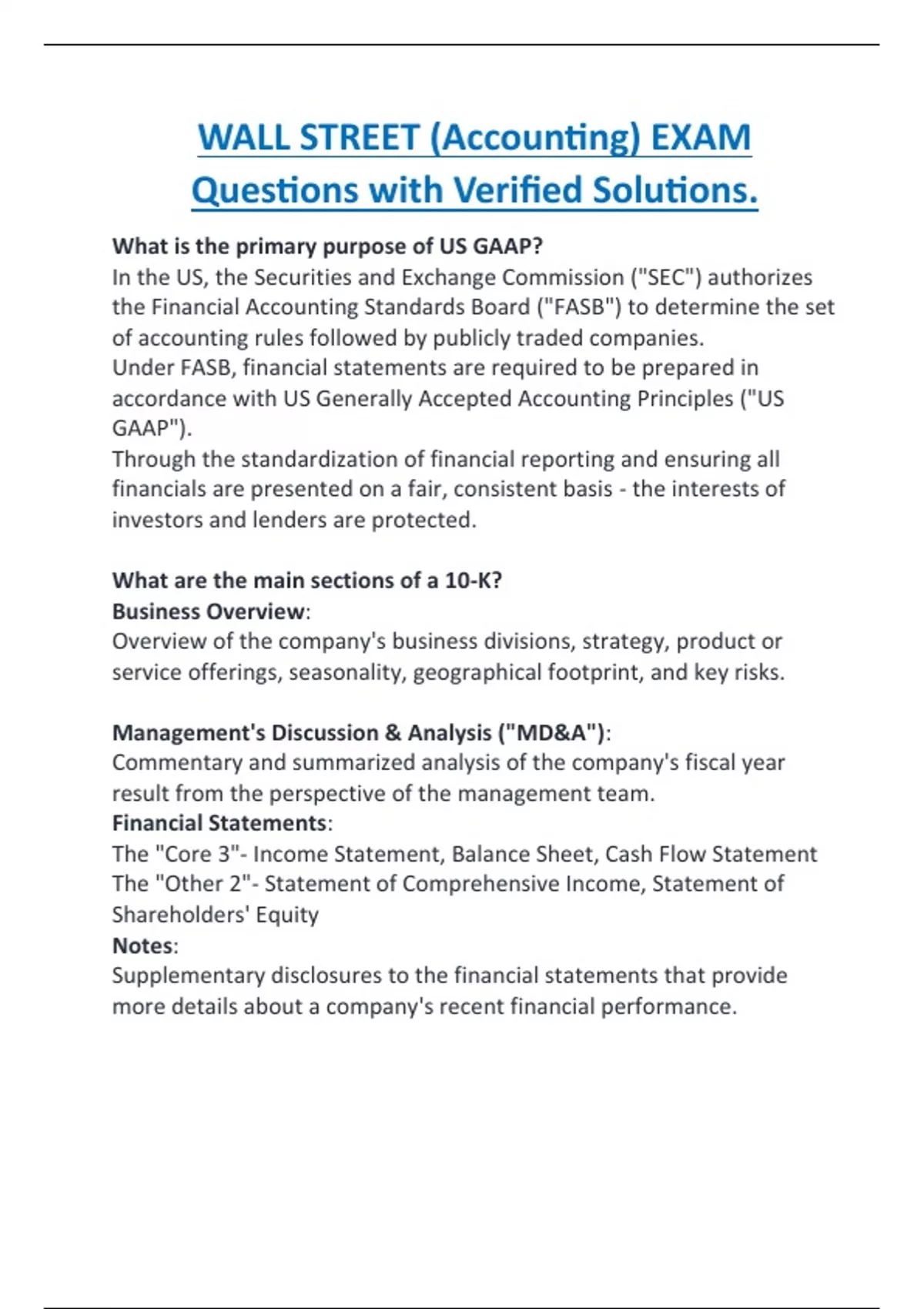 WALL STREET (Accounting) EXAM Questions with Verified Solutions.