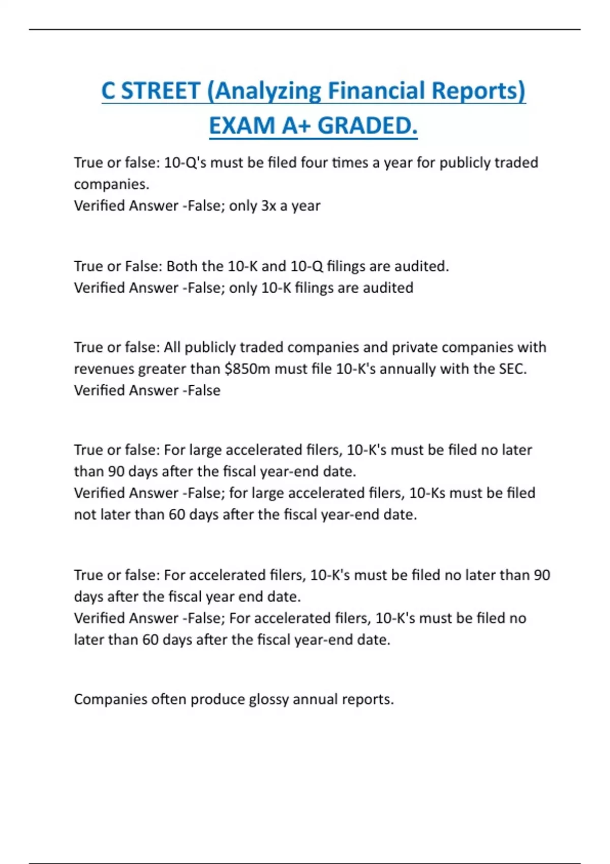 WALL STREET (Analyzing Financial Reports) EXAM A+ GRADED.