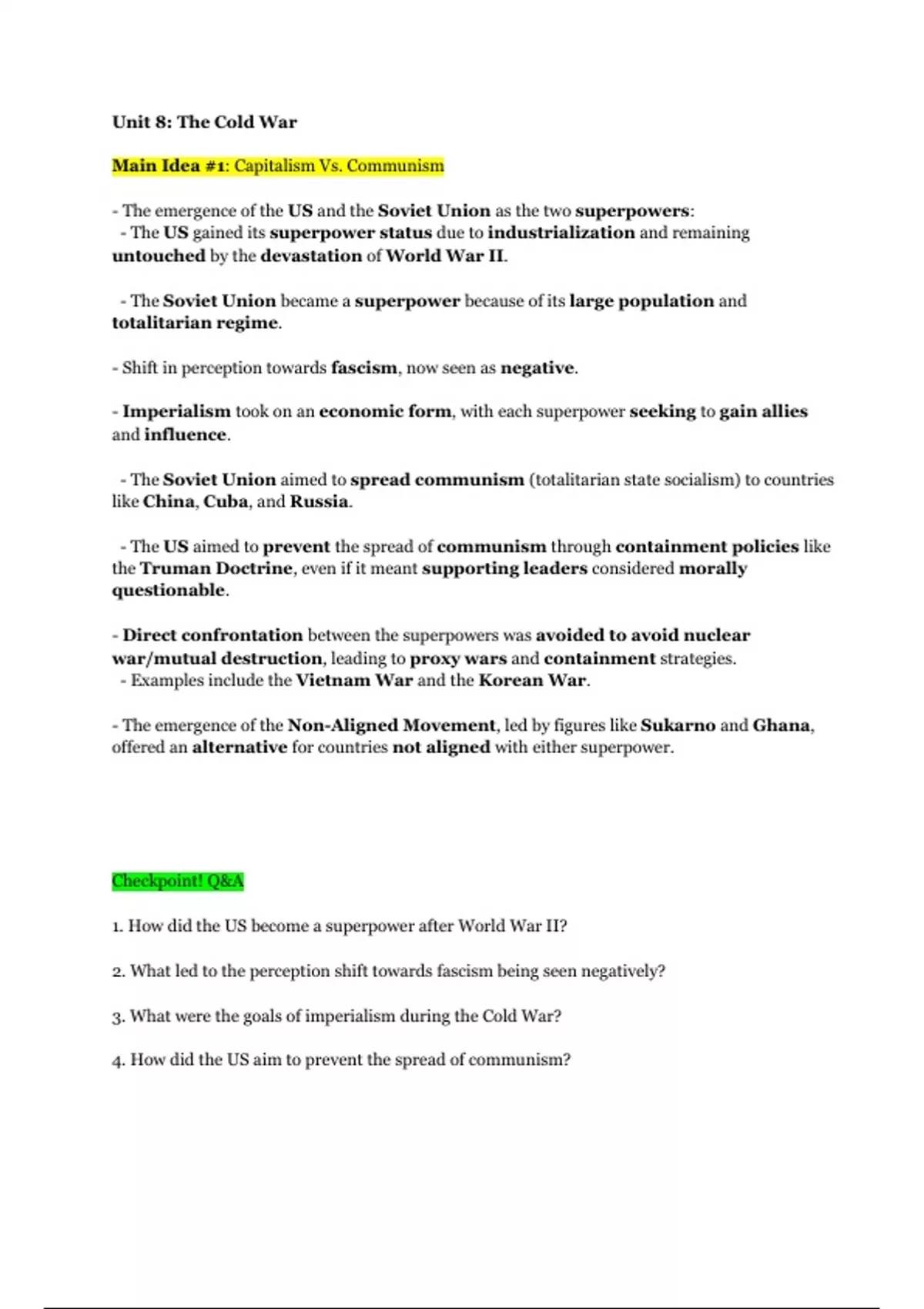 Complete AP World History Modern Unit 8 Review Study Guide with highlighted main points, need-to-know vocabulary, and questions for review. Study well!!!
