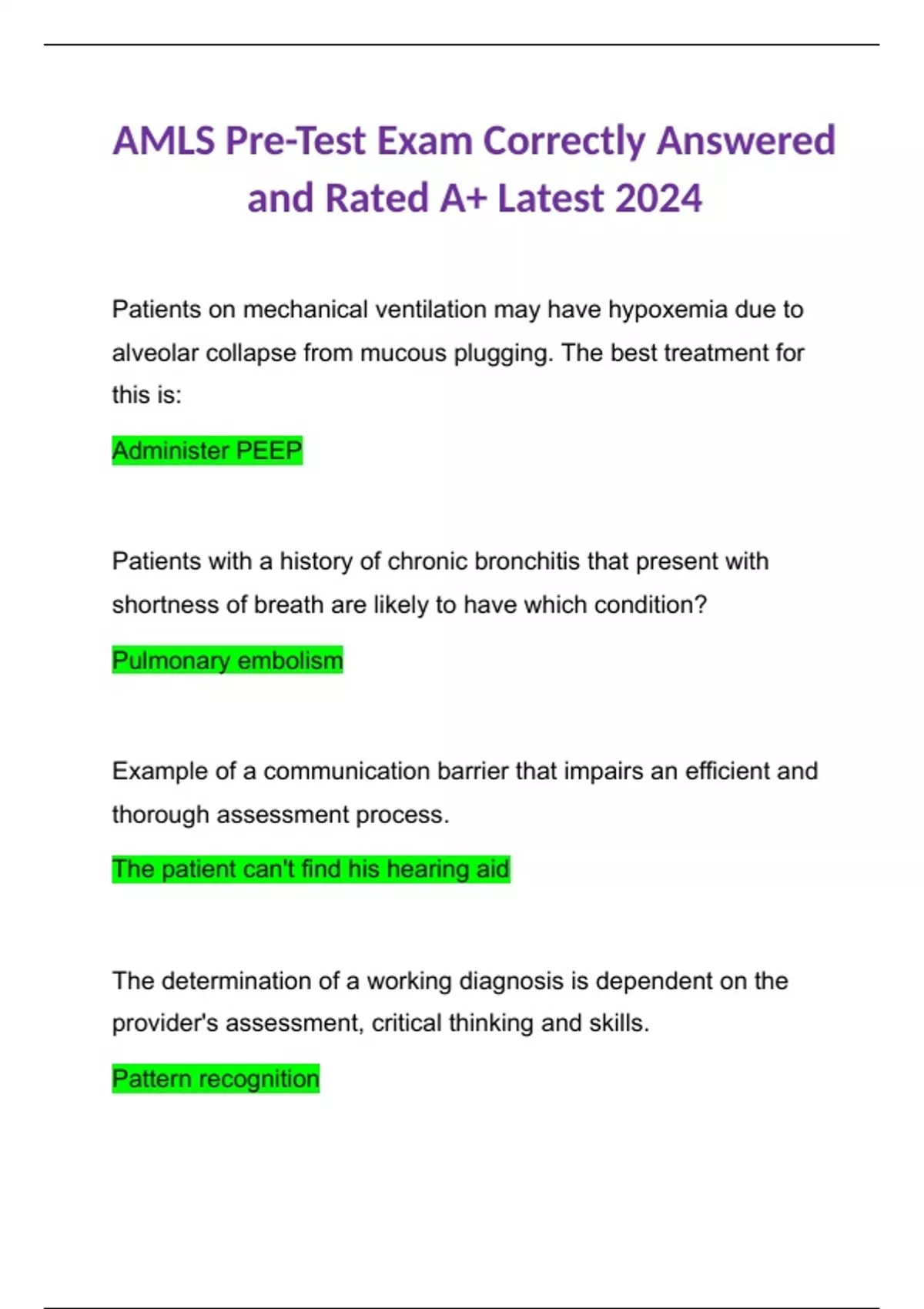 amls pre test exam correctly answered