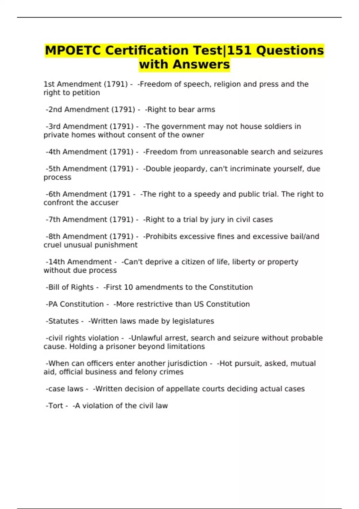 MPOETC Certification Test|151 Questions with Answers