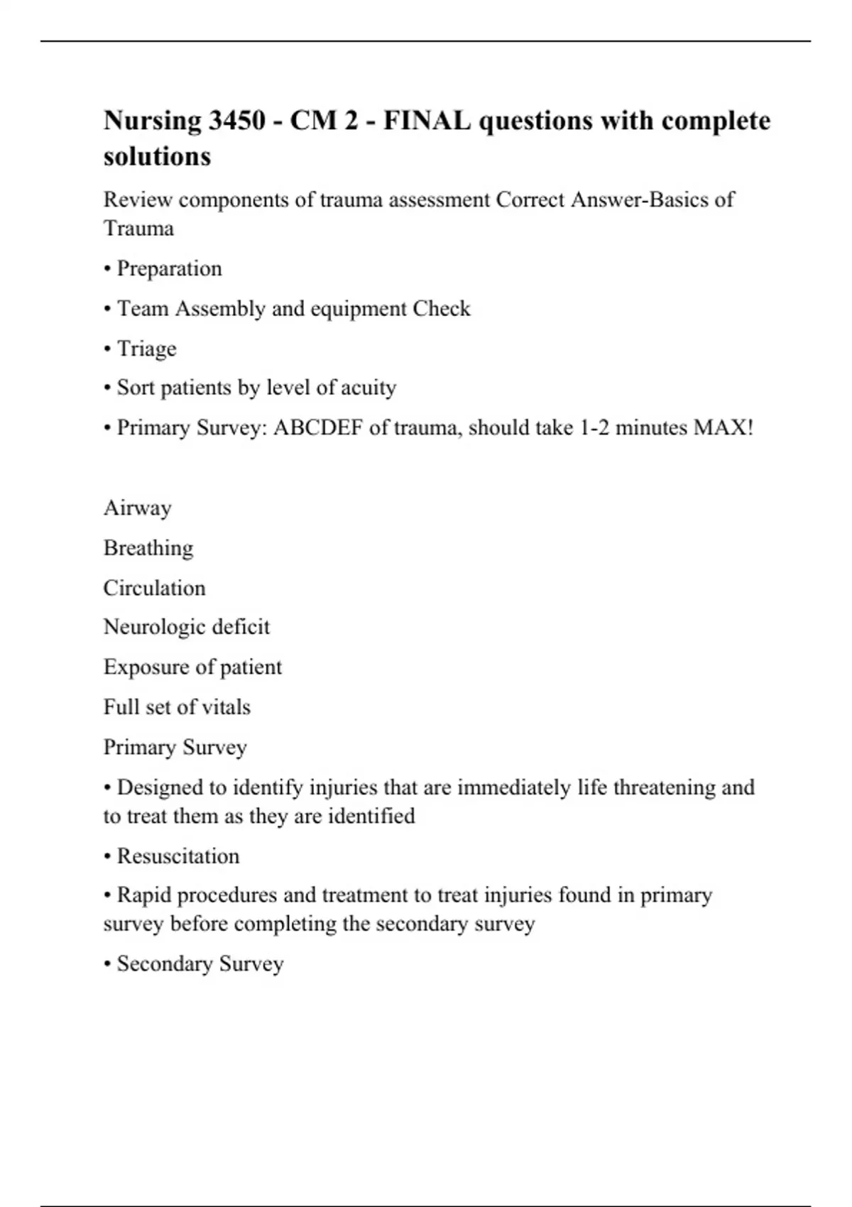 NURS 3450 Texas Tech University -Nursing 3450 - CM 2 - FINAL questions with complete solutions