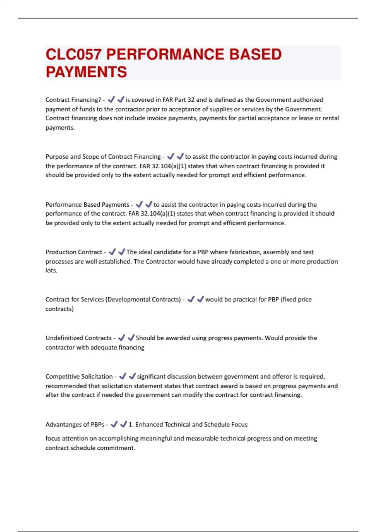 CLC057 PERFORMANCE BASED PAYMENTS QUESTIONS SOLVED CORRECTLY & GRADED A+