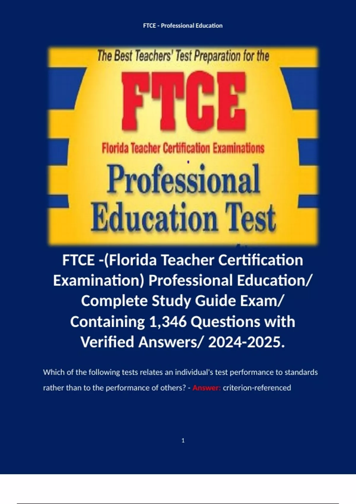 FTCE -(Florida Teacher Certification Examination) Professional Education/ Complete Study Guide Exam/ Containing 1,346 Questions with Verified Answers/ .