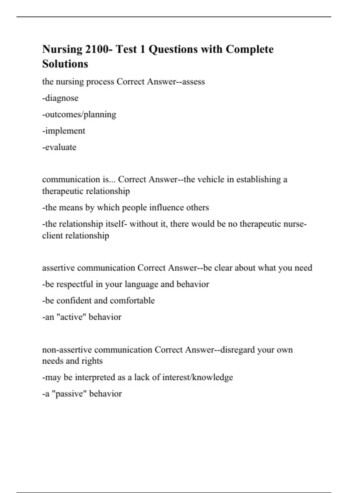 nursing 2100 test 1 questions with complete solut