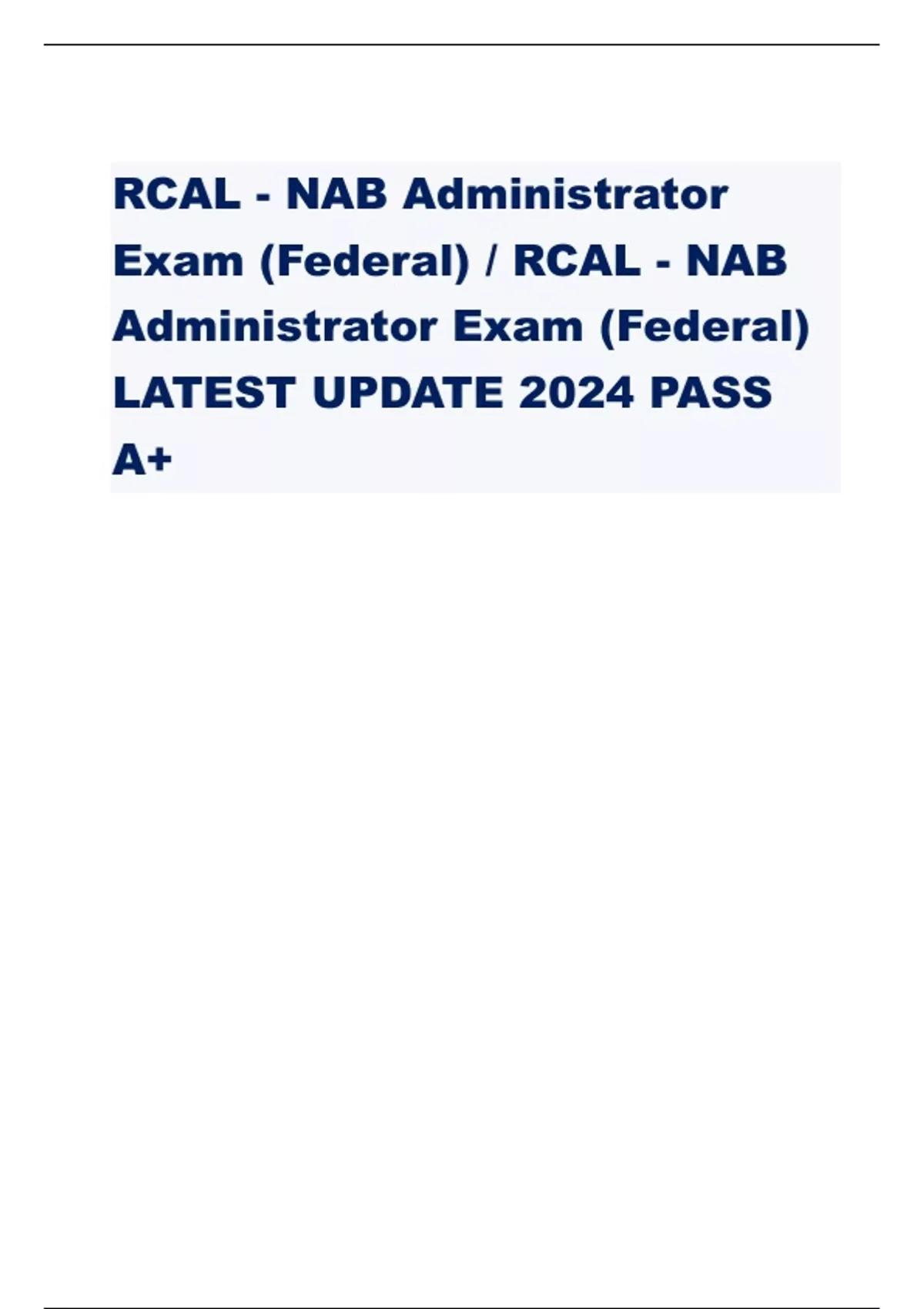 rcal nab administrator exam federal