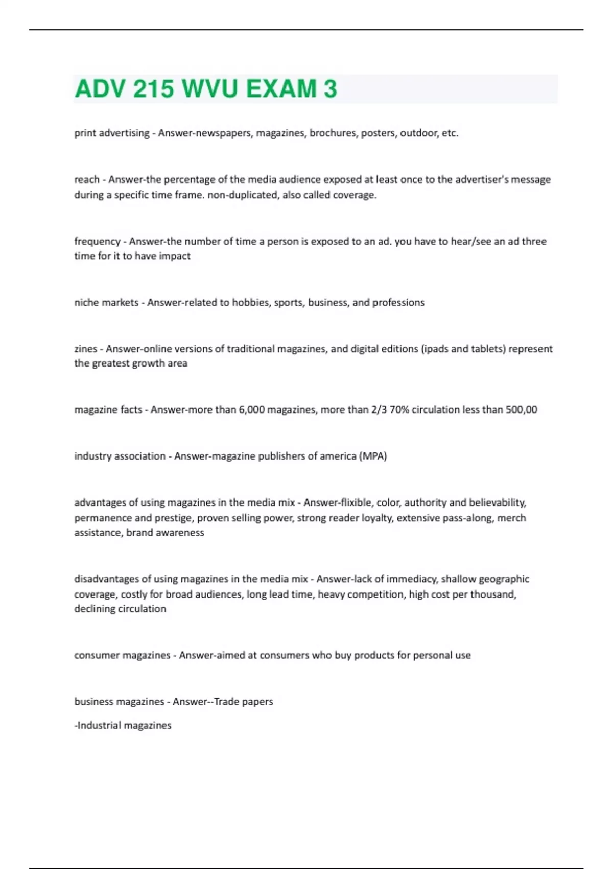ADV 215 WVU EXAM 3 Questions And Answers Solved 100% Correct!!