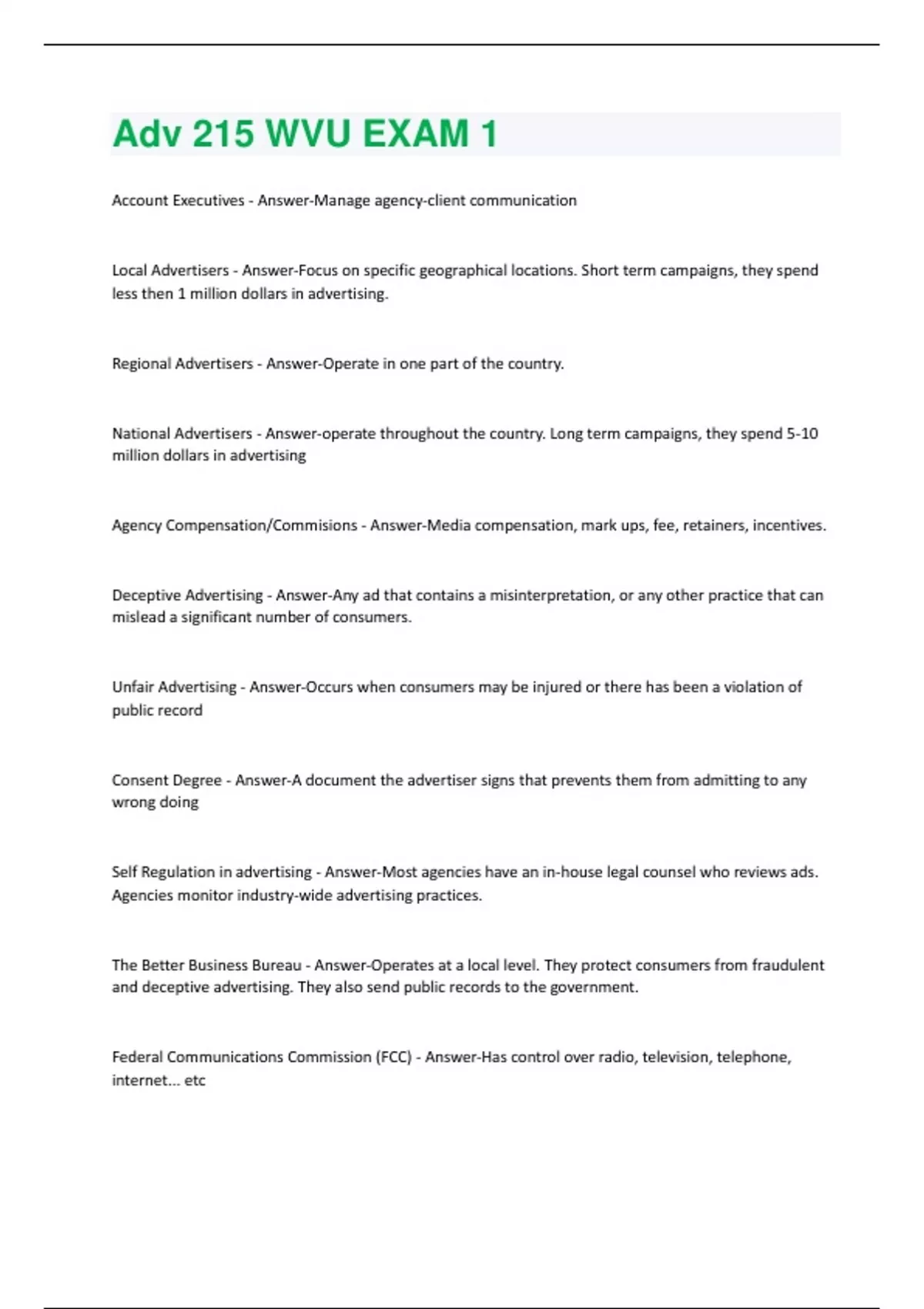 Adv 215 WVU EXAM 1 Questions And Answers Solved 100% Correct!!