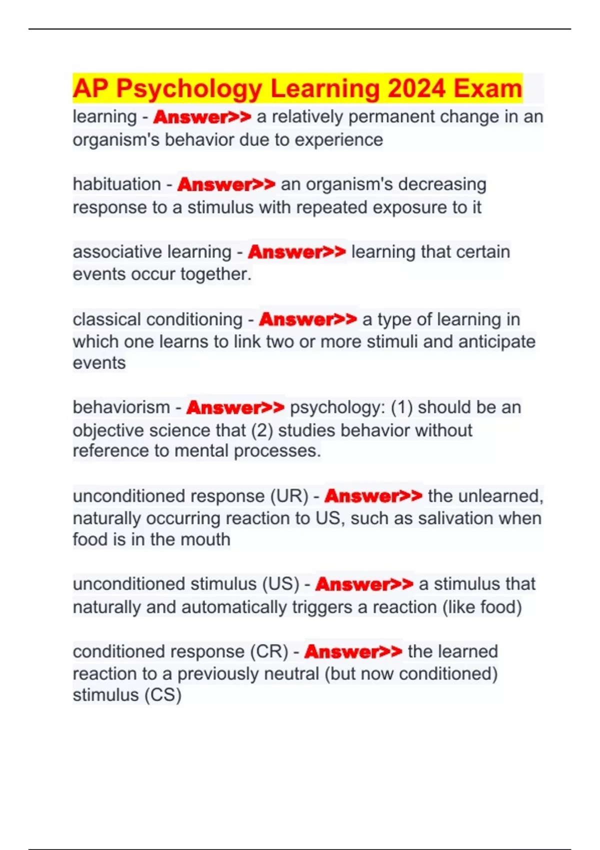 AP Psychology Learning 2024 Exam