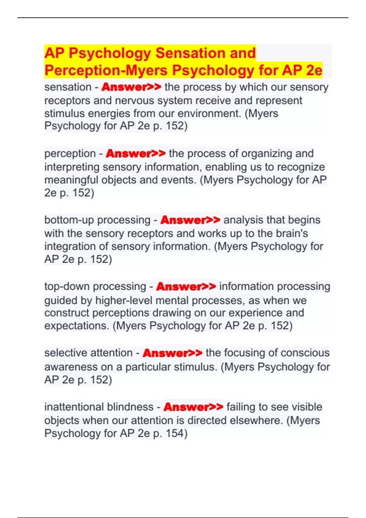 AP Psychology Sensation and Perception-Myers Psychology for AP 2e