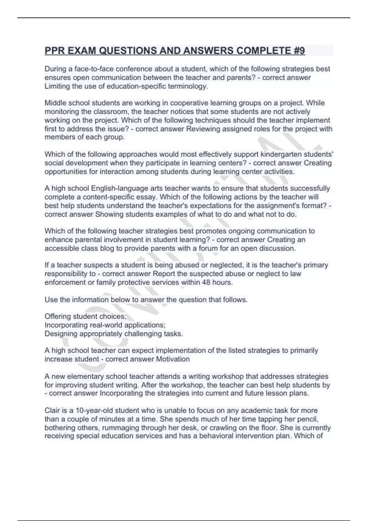 PPR EXAM QUESTIONS AND ANSWERS COMPLETE #9.